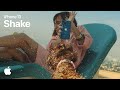 In the first spot, titled "Shake," a dog dives into a swimming pool on a hot, sunny day, then gets out, walks over to its owner, and proceeds to shake dry, showering her and her iPhone 13 in water. "iPhone 13. Spill and splash resistant," reads the slogan. "Relax, it's iPhone."